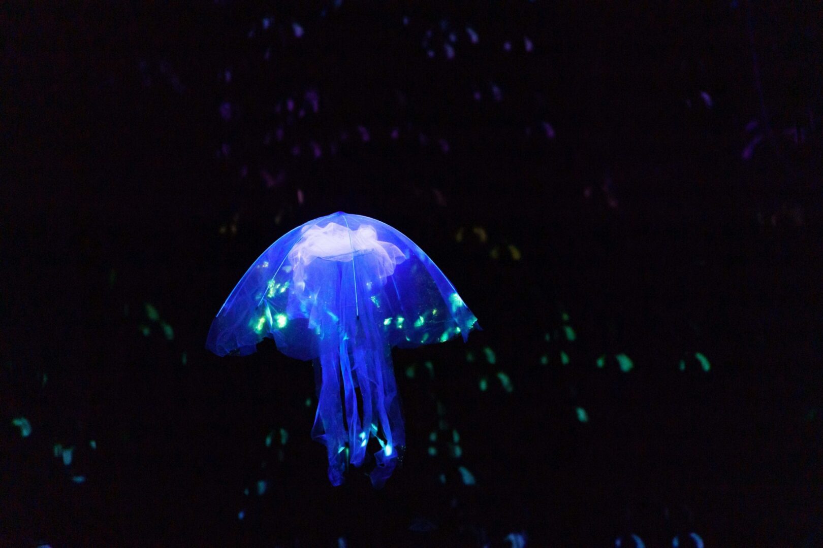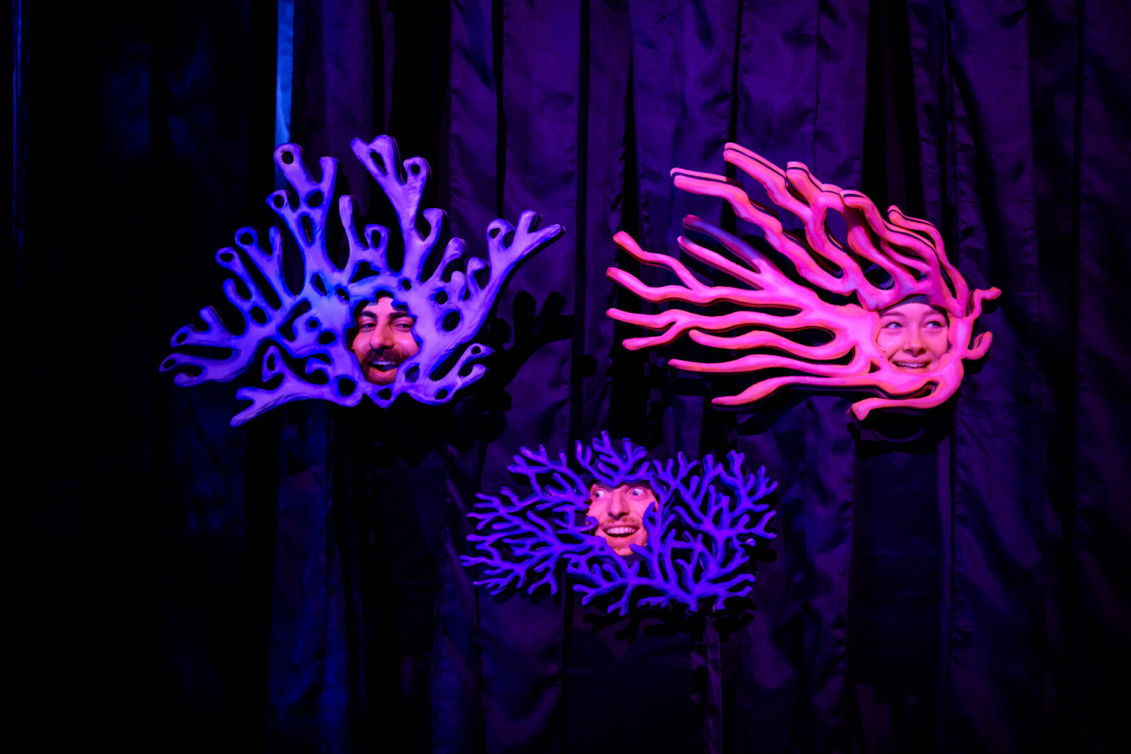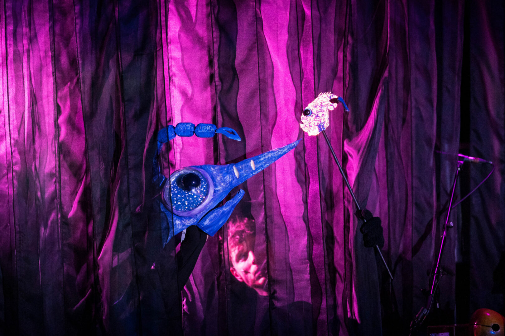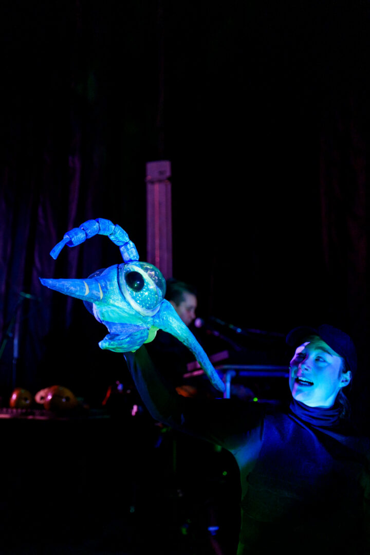 ‘DIEP’ is bepaald geen oppervlakkig muzikaal objecttheater, met fantastische lichtgevende wezens en livemuziek. Naast onderwereldse klanken van allerlei slagwerk horen we de pure stem van zangeres Dirge Seçil Kuran.