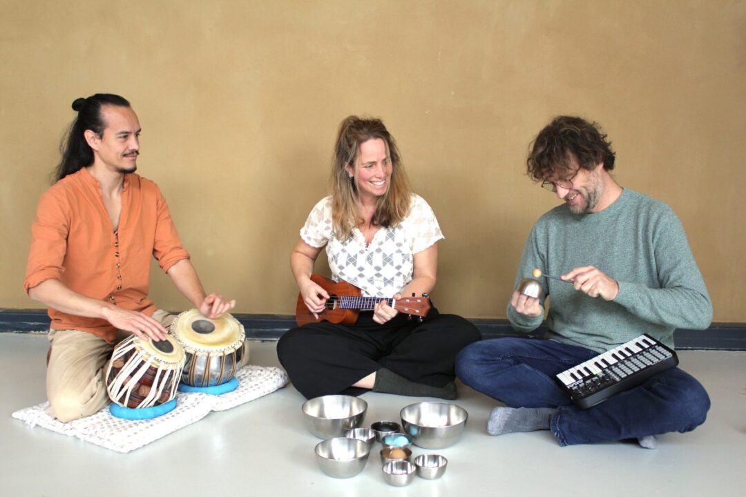 Een landschap van klanken: zingende snaren, klappende handen, ritmes die door de ruimte huppelen en een tabla die bijna kan “praten”. Geluiden verschijnen uit onverwachte hoeken en nodigen uit om mee te dwalen. Fantasietaal mengt zich met de stemmen die in de wijken van Almere werden opgevangen, waardoor iets nieuws en herkenbaars tevoorschijn kwam..
