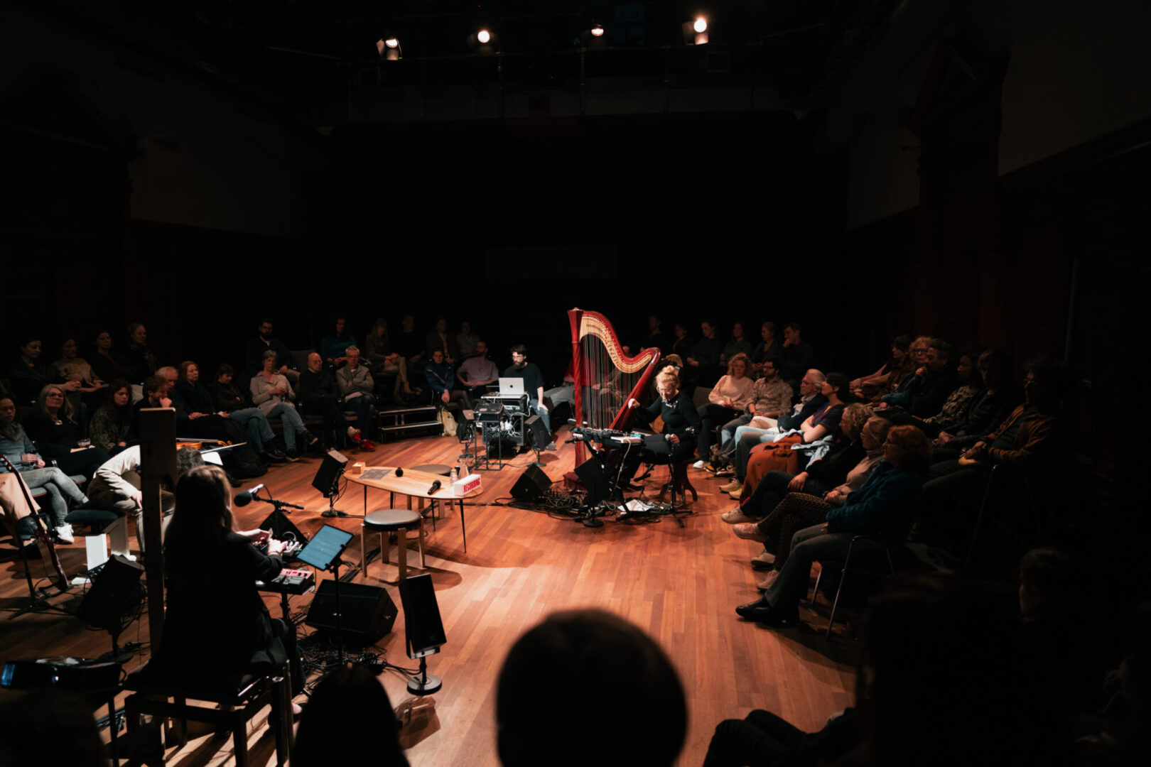 Het publiek maakt het onderzoek compleet wanneer de musici hen beginnen te interviewen over deze onderwerpen. De gesprekken worden gedragen door live geïmproviseerde muziek van Sarah Jeffery (blokfluiten), George Dumitriu (altviool, gitaar) en Andrea Voets (harp).