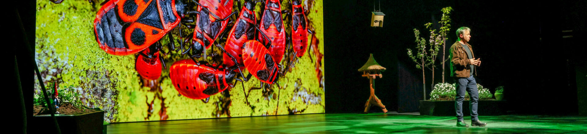 Vergeet verre jungles of uitgestrekte savannes: de echte safari speelt zich af in je achtertuin, op je balkon of zelfs op het dak van je flat. De voorstelling combineert spectaculaire filmbeelden van de gerenommeerde natuurfilmers van De Nieuwe Wildernis, De Wilde Stad, De Wilde Noordzee en Onder Het Maaiveld met de persoonlijke verhalen van bioloog Luc Hoogenstein. Luc is niet alleen een gepassioneerd verteller, maar ook een fervent tuinonderzoeker. In zijn stadstuin in Utrecht ontdekte hij meer dan duizend soorten planten en dieren, van mossen tot wespen, van vliegenzombieschimmels tot egels. Tijdens de voorstelling neemt Luc het publiek mee in zijn verwondering over de natuur dichtbij. Hij vertelt over spectaculaire overlevingsstrategieën van alledaagse soorten, over schimmels die vliegen veranderen in zombies, over mieren die bladluizen houden als vee, en over egels die als nachtelijke bezoekers door je tuin banjeren. De verhalen zijn persoonlijk, humoristisch en informatief en worden ondersteund door oogstrelende beelden van topkwaliteit. Stadssafari is een laagdrempelige, toegankelijke voorstelling voor een breed publiek – jong en oud, met of zonder groene vingers. Je hoeft geen expert te zijn om geraakt te worden door de schoonheid van de stadsnatuur of om geboeid te raken door Lucs aanstekelijke enthousiasme.