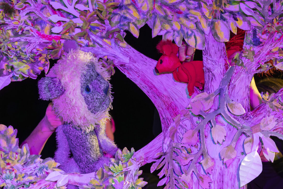 Door de verschillende installaties op toneel worden de thema’s van de voorstelling via spel tussen ouders en kinderen voortgezet.