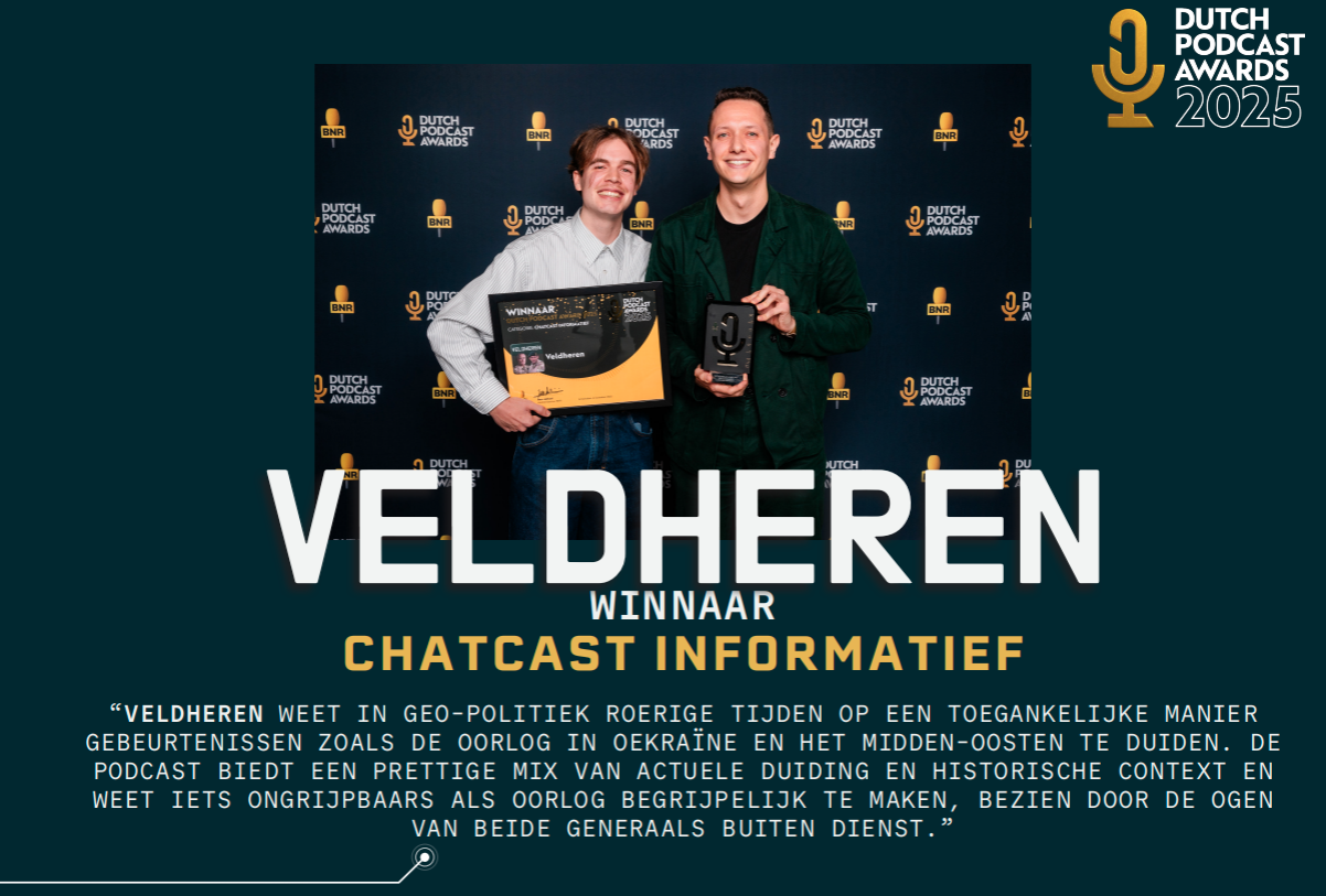 Waarom voert de mens al eeuwenlang oorlog? Hoe doen we dat eigenlijk? En belangrijker nog: hoe stoppen we ermee? In Veldheren Historisch geven Mart de Kruif (generaal buiten dienst) en Tijmen Dokter antwoord op deze en nog veel meer vragen in de relevantste en leukste geschiedenisles van Nederland.